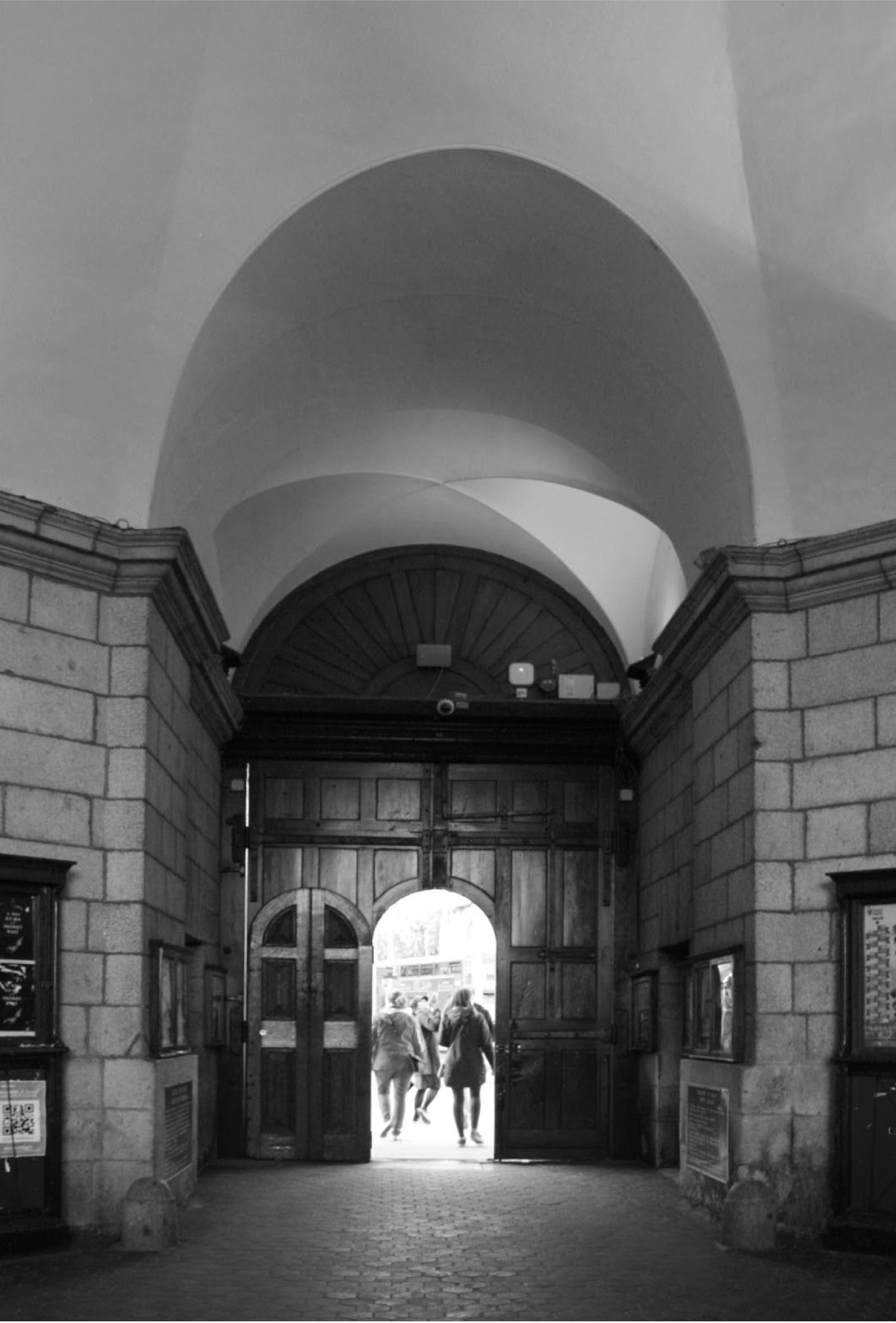 This octagonal vestibule, with its solid timber tiled floor and groin vaulted ceiling, swallows sound and acts as a compression or echo chamber as you leave the busy city and enter the tranquil realm of the Front Square. This recording captures the transitional changes as one passes through.